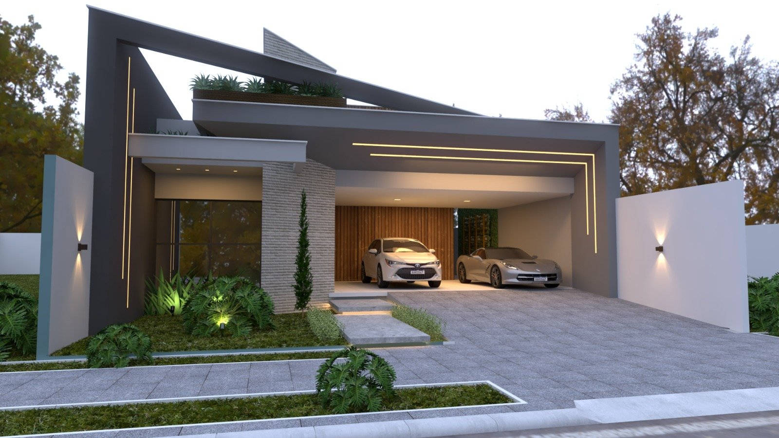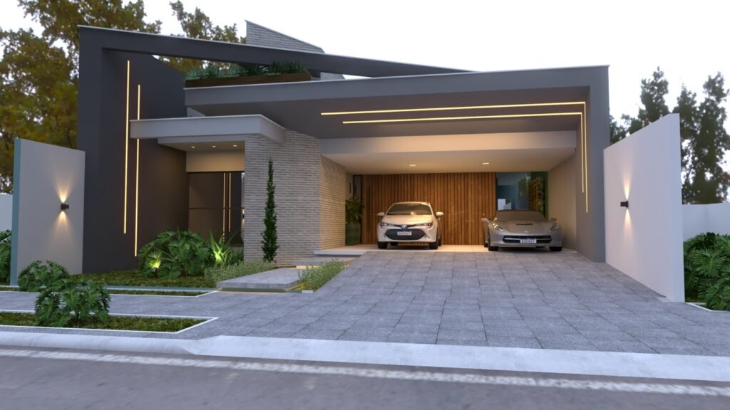 Com 267m² de área total construída em um terreno amplo de 408m², esta residência impressiona pela volumetria imponente e projeto arquitetônico pensado em cada detalhe: