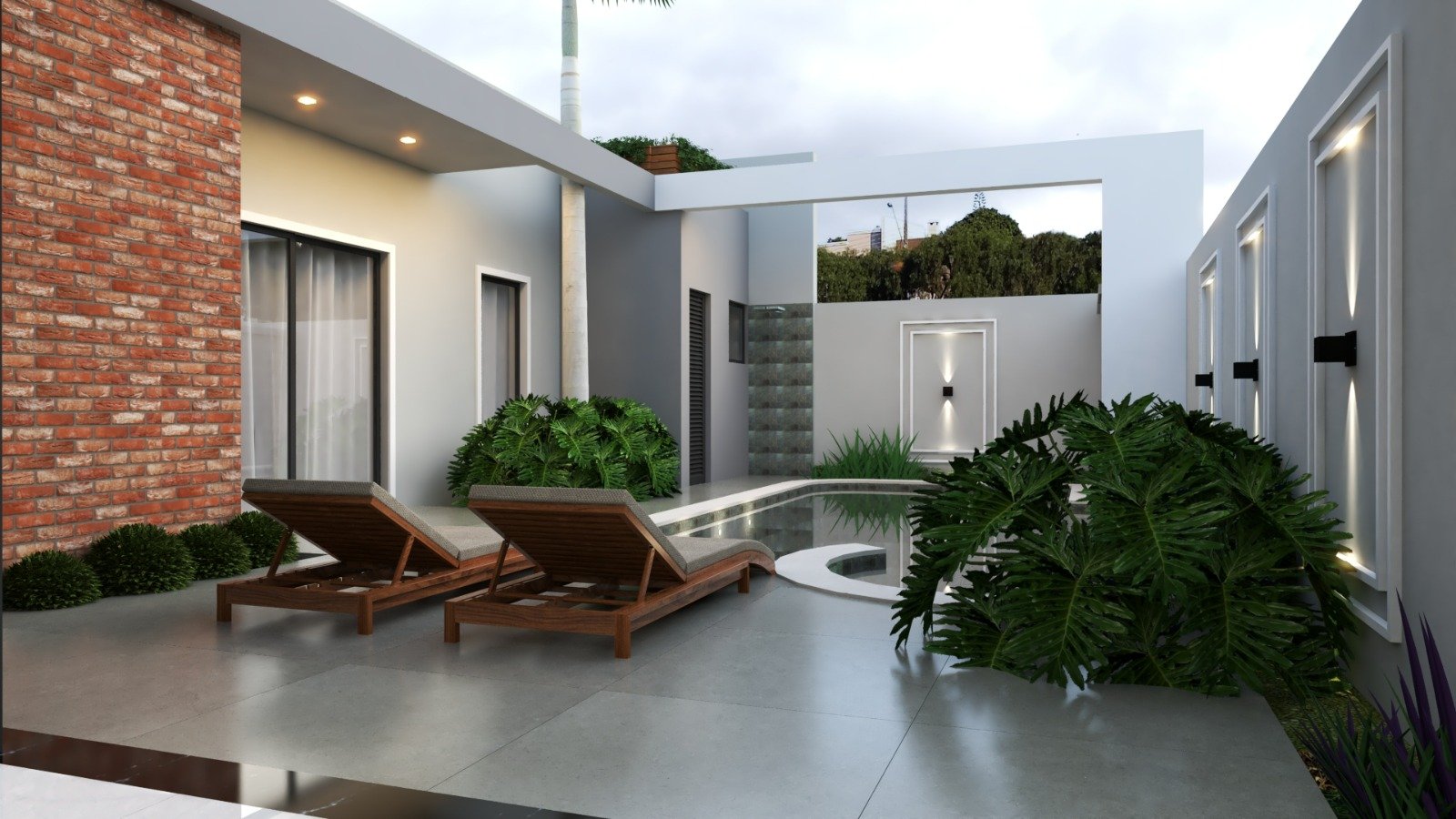 • Jardim interno entre suítes e cozinha.