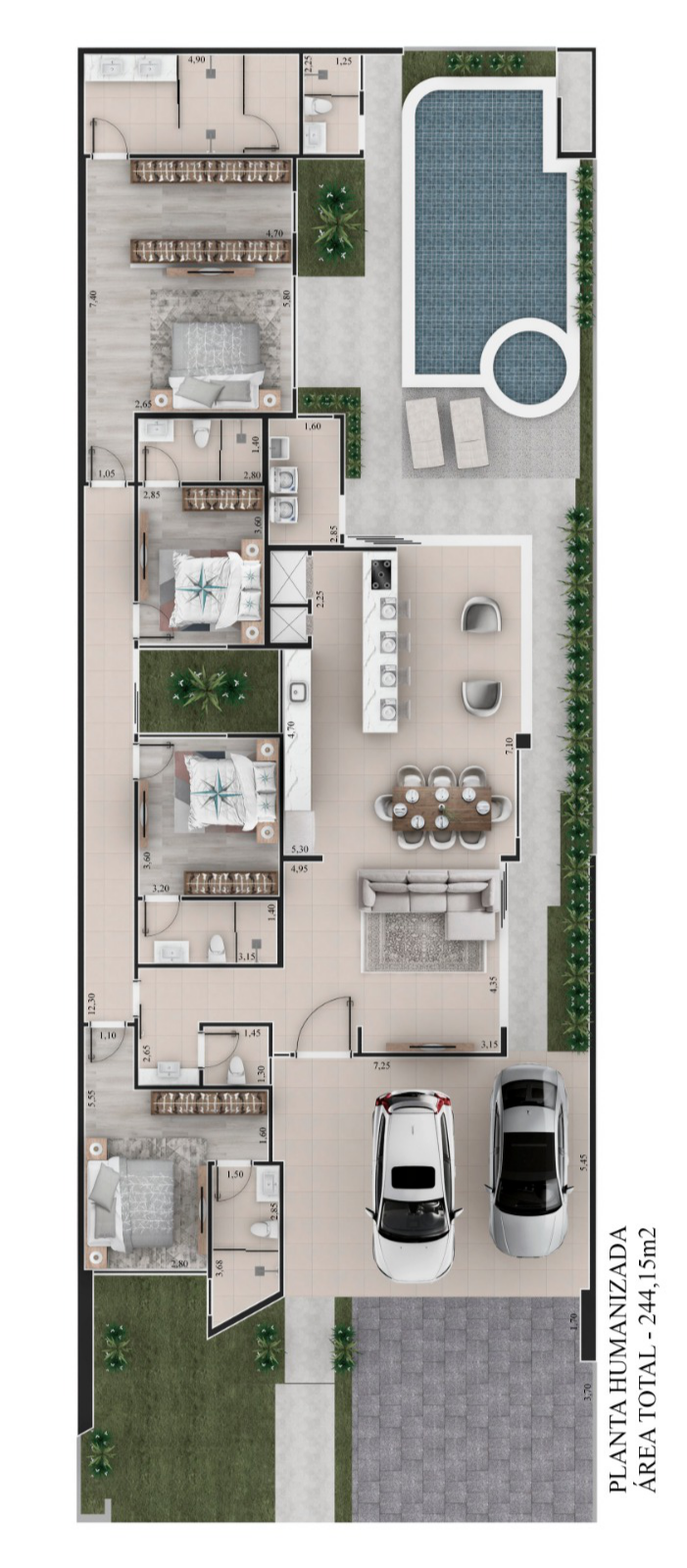 244m² de área privativa + 23m² de piscina com spa e hidromassagem